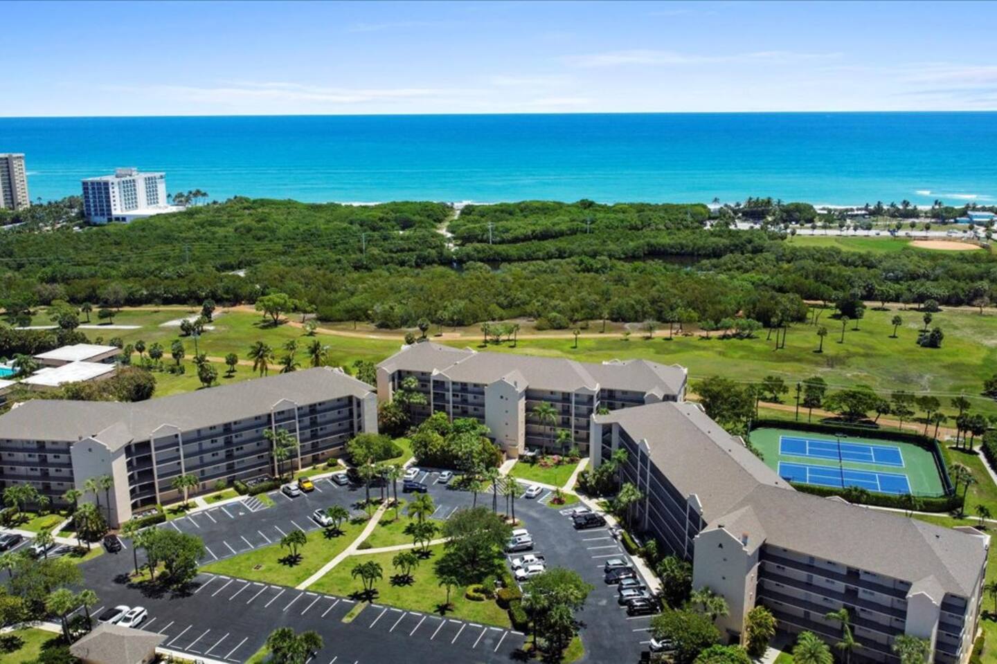 The Space 🌟 Welcome to our recently remodeled 2 bedroom, 2 bathroom condo in the picturesque Jupiter Bay. Our condo is designed with your comfort in mind and is perfect for families, couples, or friends looking to enjoy the best of Jupiter. 🛏️ Bedrooms: Two spacious bedrooms with comfortable beds for a restful night's sleep. 🚿 Bathrooms: Two modern bathrooms stocked with all the essentials. 🍽️ Kitchen: Fully equipped kitchen with updated appliances for your cooking needs. 🛋️ Living Area: Cozy and stylish living space with plenty of seating and a flat-screen TV. 🌐 Wifi: High-speed internet access to keep you connected. 🏡 Interior: Recently remodeled with contemporary decor and furnishings. Amenities in Jupiter Bay 🏖️ Enjoy the fantastic amenities that Jupiter Bay has to offer: 🏓 Pickleball Courts: Perfect for a fun game with friends and family. 🎾 Tennis Courts: Enjoy a match on our well-maintained courts. 🌊 Beach: Just a 5-minute walk to the beautiful sandy beach. 🍣 The Twisted Tuna: Delicious dining at the on-site restaurant. 🏊 Pool: Take a refreshing dip in the community pool. Nearby Attractions and Restaurants 🌴 Explore the best of Jupiter with these nearby attractions and dining options: Beaches: Enjoy the stunning beaches just minutes away. Harbourside Place: Shopping, dining, and entertainment in a beautiful waterfront setting. Jupiter Inlet Lighthouse & Museum: Discover the history and climb the lighthouse for amazing views. Blowing Rocks Preserve: Unique natural rock formations and scenic views. Riverbend Park: Hiking, biking, and kayaking in a lush natural setting. Golf Courses: Numerous golf courses in the area for enthusiasts. Loggerhead Marinelife Center: Learn about sea turtle conservation and see turtles up close. Restaurants: 🍕 Guanabanas: Waterfront dining with a tropical vibe. 🥗 Food Shack: Fresh and innovative dishes in a casual setting. 🐟 Little Moir's Leftovers: Seafood favorites with a creative twist. 🍔 BurgerFi: Gourmet burgers and fries in a relaxed atmosphere. 🍣 U-Tiki Beach: Sushi and seafood with stunning water views. We look forward to hosting you and providing an unforgettable stay in Jupiter Bay! Guests will have access to a community BBQ grill located at both pools. BBQ grill is kept locked. The HOA requires a $50 deposit in order to access the grill. Please do not use candles inside of the condo.