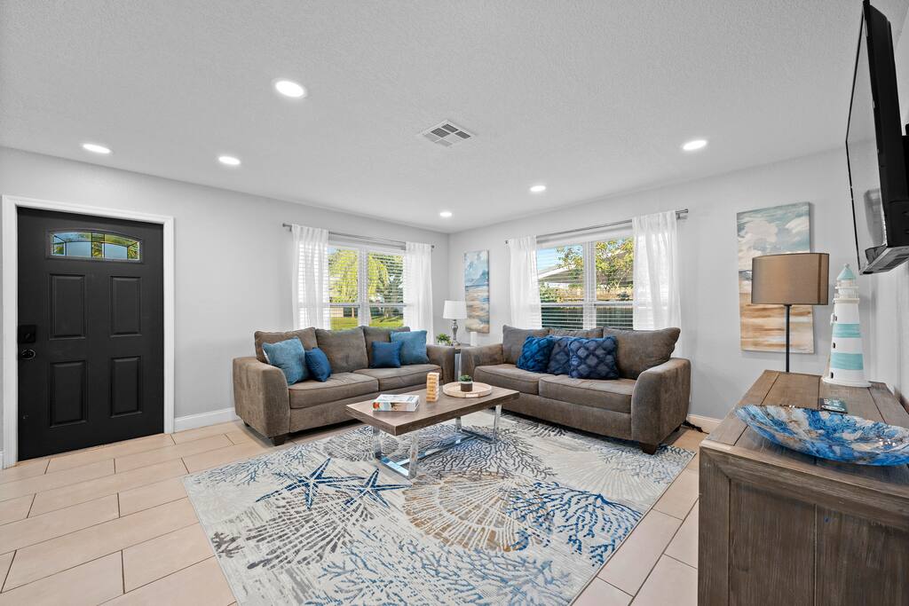 Getting Around Blue Tide is conveniently located just a short drive from Melbourneβs best beaches, restaurants, and shopping areas. Downtown Melbourne and the oceanfront are both about 10β15 minutes away by car, making it easy to explore the area while enjoying a quiet residential neighborhood. Youβll find grocery stores, coffee shops, and local dining within a few minutesβ drive. Rideshare services such as Uber and Lyft are readily available, and thereβs plenty of parking at the property for guests who prefer to drive. Melbourne Orlando International Airport is approximately 15 minutes away, offering easy access for arrivals and departures.