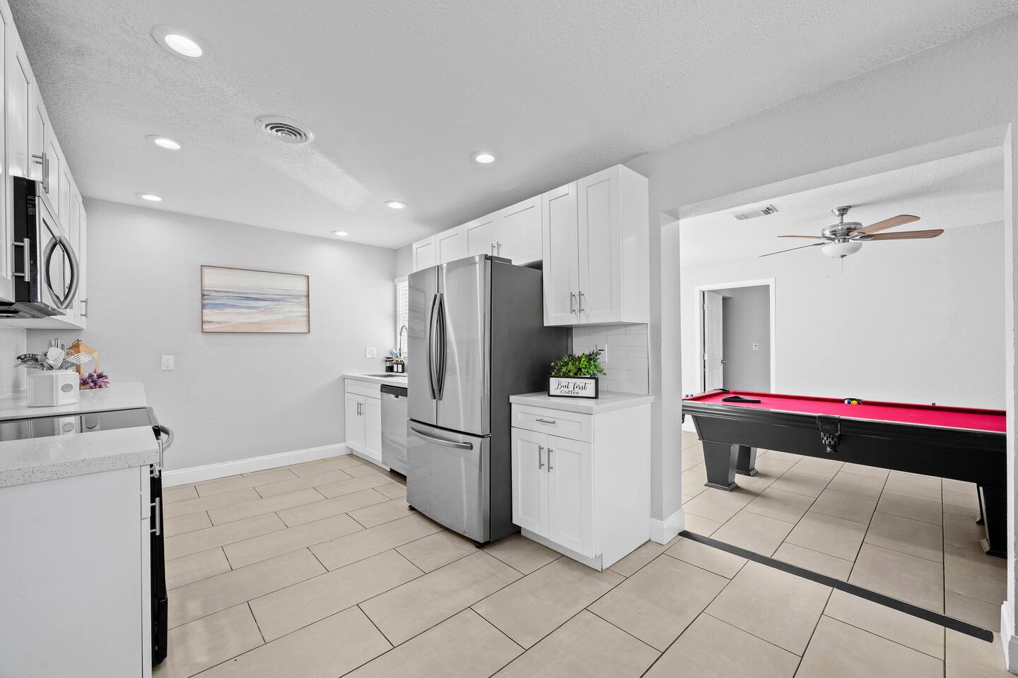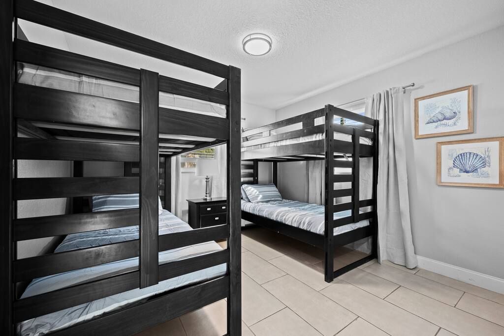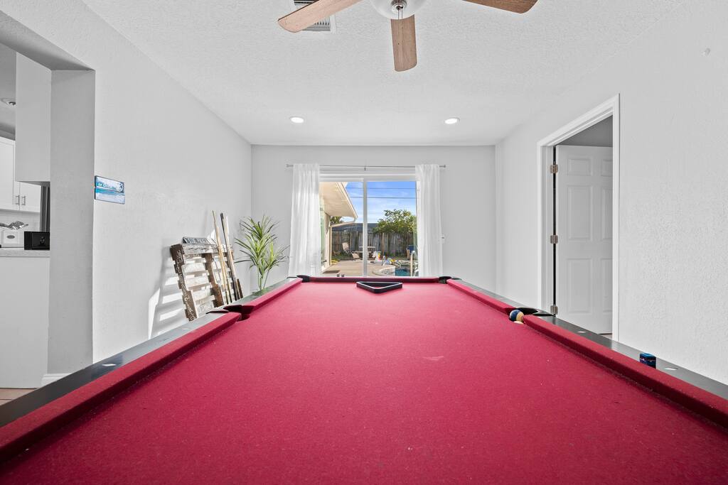 π‘ Your Property β Welcome to Blue Tide! π Discover Blue Tide, a beautiful 5-bedroom, 2-bath coastal retreat in sunny Melbourne, FL π΄. Every room is uniquely decorated in calming shades of blue, bringing a sense of peace and ocean-inspired style throughout π. ποΈ Primary Suite: King bed, Smart TV, ensuite bathroom, and direct pool access β perfect for morning coffee or a late-night swim. ποΈ Bedroom 2: King bed, coastal dΓ©cor, and soft blue tones for ultimate relaxation. ποΈ Bedroom 3: Queen bed with Smart TV and plenty of closet space. ποΈ Bedroom 4: Queen bed, peaceful atmosphere, and workspace ideal for remote work π». ποΈ Bedroom 5: Two twin-over-twin bunk beds β perfect for kids or extra guests π§π¦. π³ Kitchen & Living: The fully stocked kitchen includes stainless steel appliances, cookware, utensils, coffee maker β, blender, toaster, and bar seating. The dining area seats six comfortably, and the open living room features a large Smart TV and cozy sectional β ideal for movie nights π¬. π Outdoor Space: Step outside to your private backyard oasis featuring a sparkling pool, lounge chairs, outdoor dining area, and gas grill ππ₯. Whether youβre sunbathing, swimming, or enjoying cocktails under the stars, the backyard is the heart of Blue Tide. π Extras: High-speed WiFi & multiple Smart TVs Washer & dryer π§Ί Driveway parking for up to 3 cars Smart lock for easy self check-in π Beach towels, chairs & pool floats included ποΈ Just minutes from Melbourneβs beaches, downtown dining, and local attractions, Blue Tide is your ideal home base for the perfect Florida getaway ππ΄ π½οΈ Nearby Restaurants & Attractions π΄ Local Favorites: Chart House β Upscale seafood & steakhouse right on the water π€π₯© Meg OβMalleyβs Irish Pub β Classic Irish food, drinks, and live music π»πΆ El Ambia Cubano β Authentic Cuban cuisine with outdoor riverfront dining π¨πΊ Longboards Oceanfront Grille β Beachfront spot for burgers, tacos, and ocean views ππ Hemingwayβs Tavern β Caribbean-inspired dishes and tropical cocktails πΉ Backwater β Popular breakfast and brunch restaurant with Southern flair π₯π³ βοΈ Nearby Attractions: Paradise Beach Park β Family-friendly beach with restrooms, grills, and lifeguards ποΈ Downtown Melbourne β Boutiques, cafΓ©s, bars, and live entertainment πποΈ Andretti Thrill Park β Go-karts, mini golf, arcade games, and fun for all ages ποΈπ― Brevard Zoo β Explore wildlife exhibits and zipline over the treetops π¦π¦ Historic Rossetter House Museum β Learn about Melbourneβs history in a charming setting π‘π Indian River Lagoon β Kayaking, paddleboarding, and dolphin watching adventures πΆπ¬ Whether youβre in the mood for oceanfront dining, local culture, or outdoor fun, everything is just a short drive from Blue Tide!