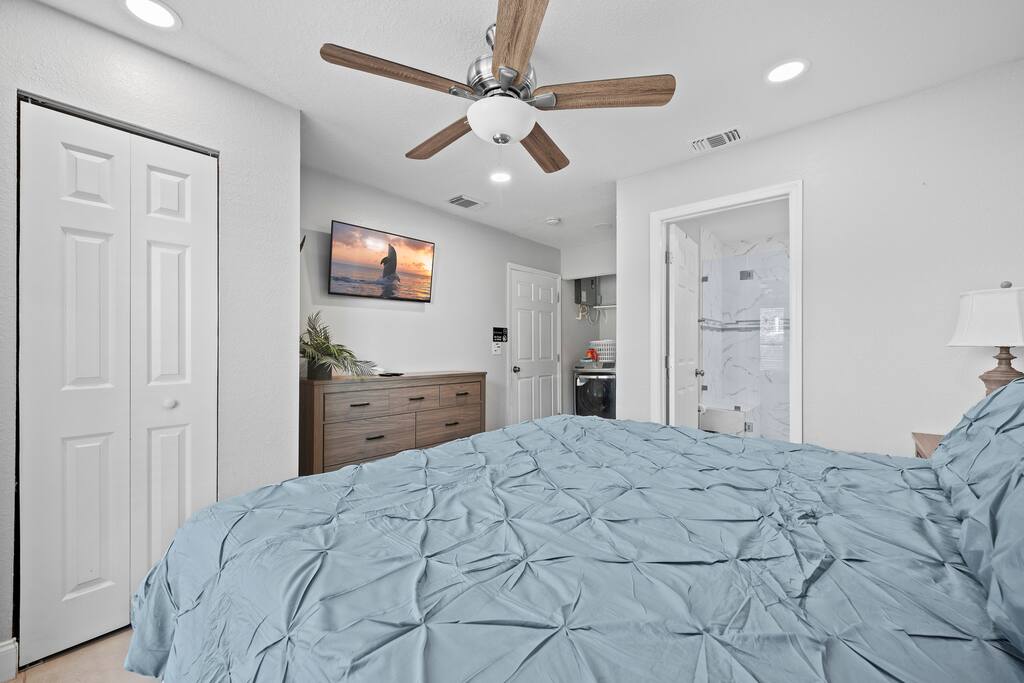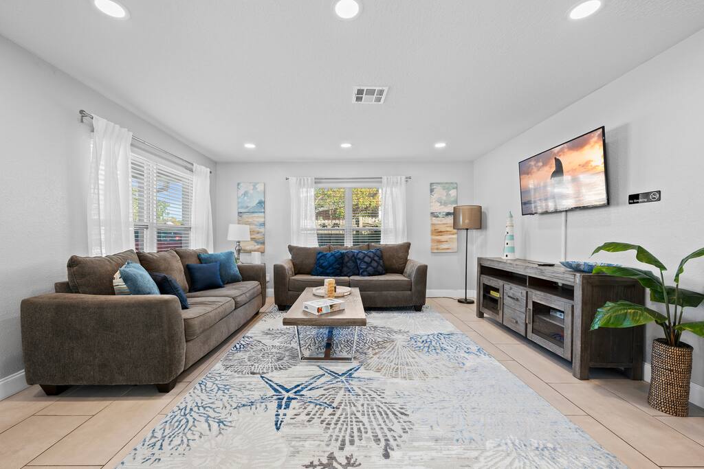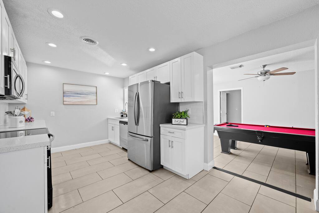 πͺ Guest Access π΄ Guests have full access to the entire home and private backyard, including: π¦ Pool Area: Enjoy exclusive use of the sparkling pool, lounge chairs, and outdoor dining area β perfect for relaxing in the Florida sunshine or unwinding under the stars. π³ Kitchen & Living Spaces: Access the fully equipped kitchen, dining area, and open living room β great for cooking meals, gathering with family, or watching movies on the Smart TV. ποΈ Bedrooms & Baths: All 5 bedrooms and 2 full bathrooms are available for your stay. Each room is uniquely styled with soothing blue dΓ©cor and comfortable bedding for a restful nightβs sleep. π Parking: Driveway parking for up to 3 vehicles. π Check-In: Seamless self check-in via smart lock for your convenience β no need to meet in person. Guests will have complete privacy during their stay, but our management team is just a message away if you need anything! π