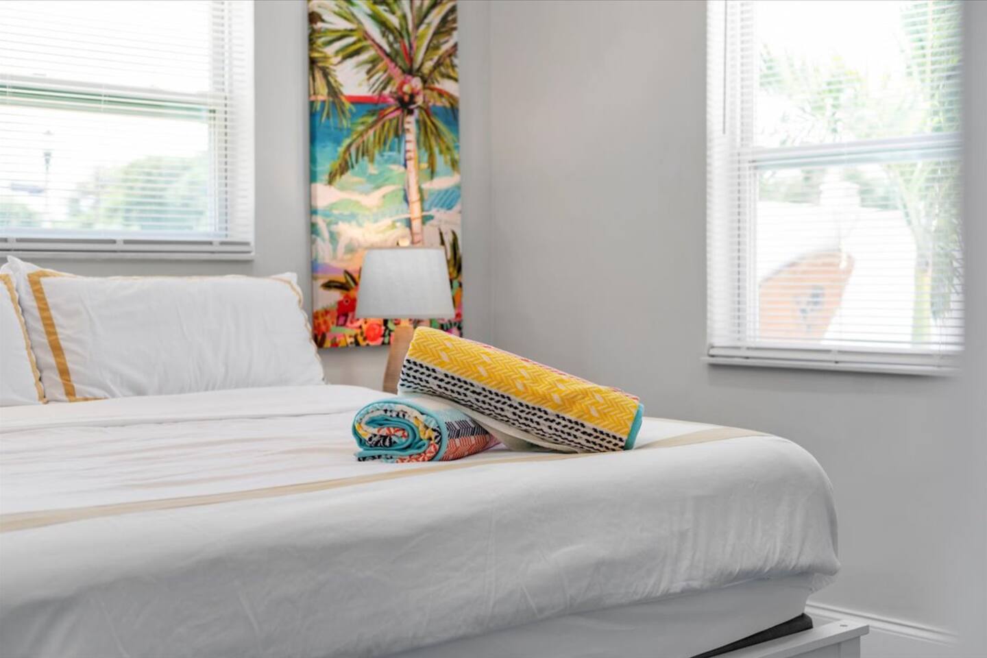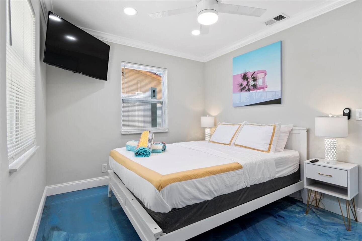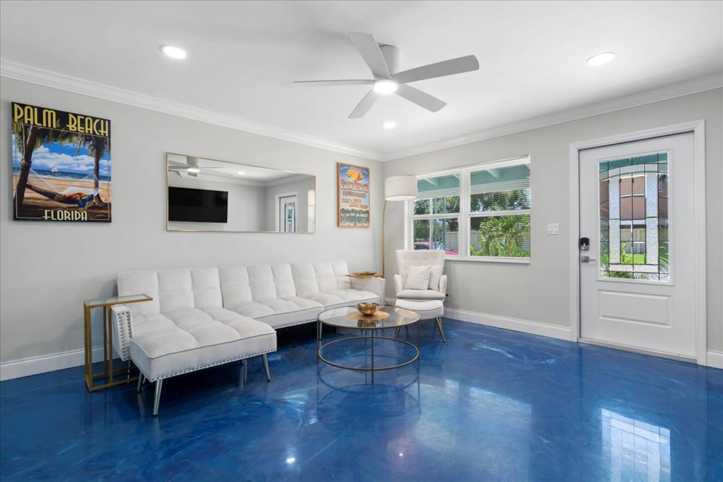 Welcome to your vibrant & stylish 2‑bedroom getaway in the heart of West Palm Beach! This fun and friendly home is packed with amenities and is just minutes from beach days, downtown nights, and PBI airport convenience. Hot tub – unwind under the stars after a day in the sun Comfy beds & Wifi – dreamy sleep and fast internet for work or play Super cool blue floors – bold, beachy vibe throughout Cornhole set – backyard fun included, competitively casual