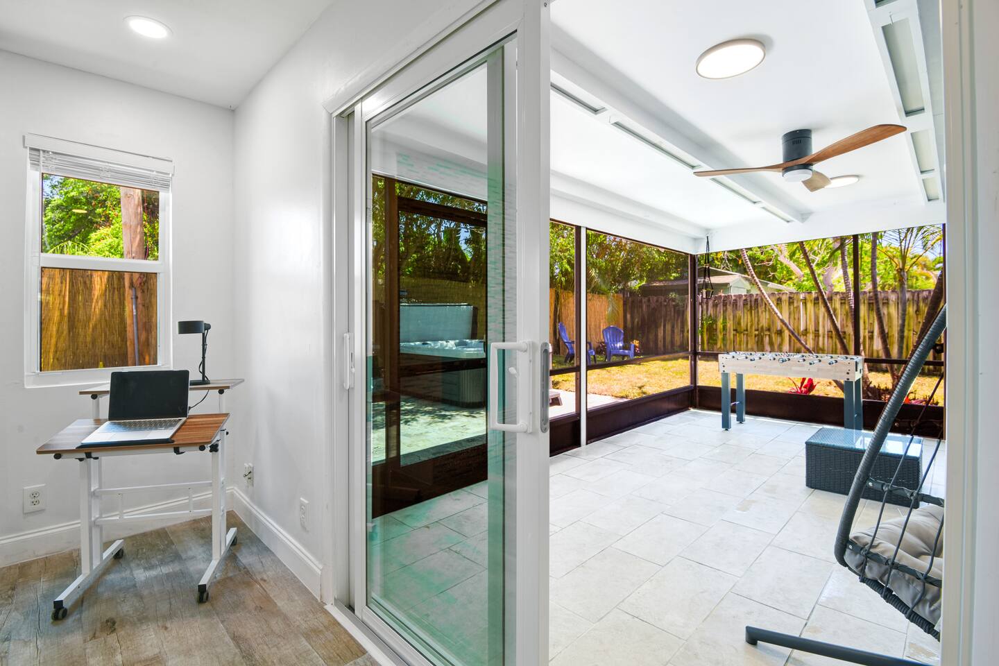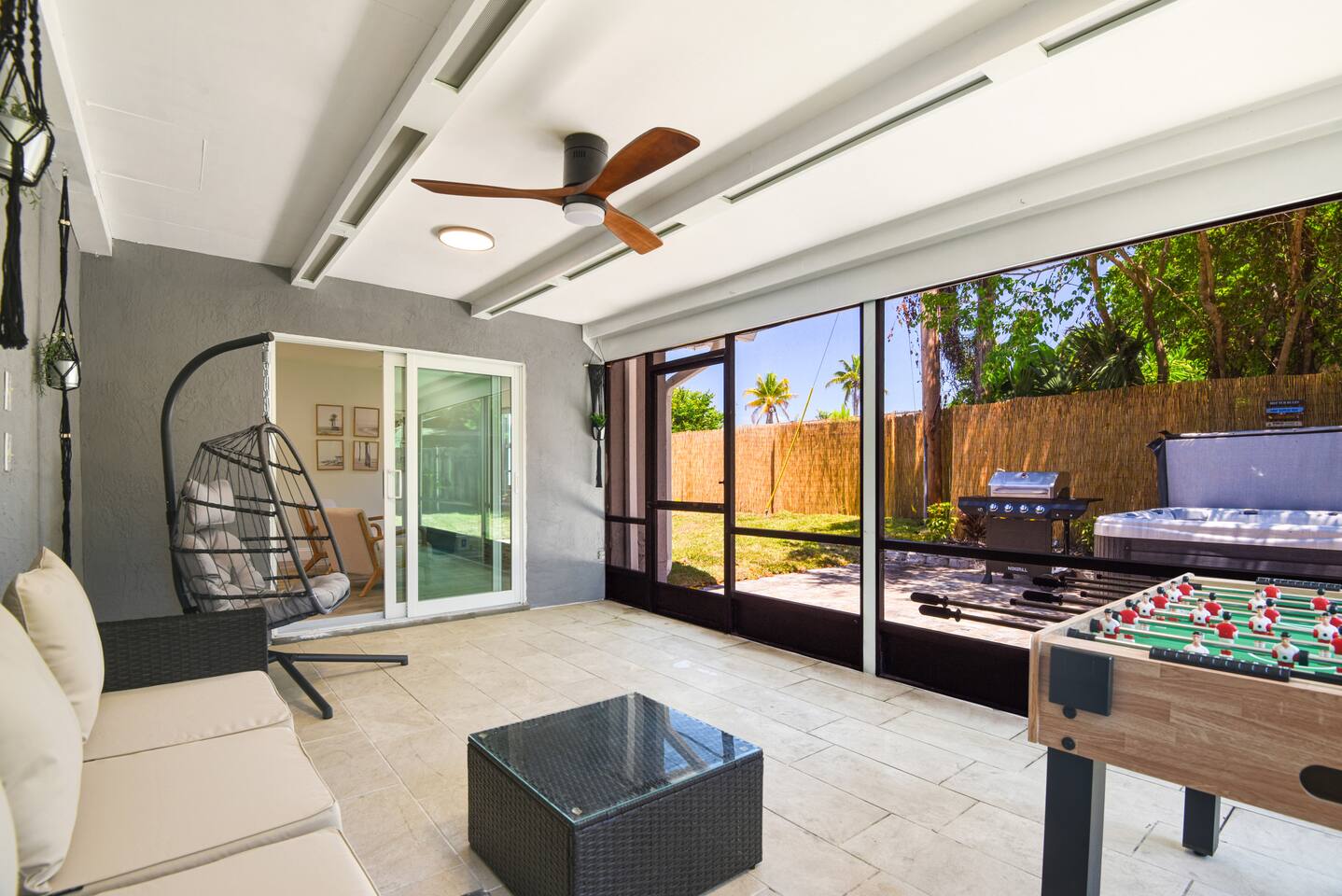 The Space ๐ก ๐๏ธ3 Bedrooms: spacious bedrooms with comfortable beds for a restful sleep. ๐ฟ 2 Bathrooms: Two modern bathrooms with all necessary amenities provided. ๐น Hot Tub: Relax and unwind in the hot tub. ๐ฒ 2 beach cruiser bikes ( the house is 10 minutes bike ride to the beach) ๐ Outdoor BBQ Grill: Enjoy cooking delicious meals outdoors. โฝ Foosball Table: Have fun with family and friends. ๐บ Mini Fridge: Convenient for storing drinks and snacks. ๐ฟ Screened-in Outdoor Area: Outdoor space protected from insects. ๐ Wifi: High-speed internet access to stay connected. ๐งบ Dedicated spacious laundry room ๐งผ Provided: We provide all linens, bed sheets, pool towels, shampoo, conditioner, body wash, hand soap, dish soap, laundry detergent, and garbage bags. Nearby Amenities and Attractions ๐ด Explore the vibrant area of Delray Beach: ๐๏ธ Beaches: Delray Municipal Beach: Popular beach for swimming and sunbathing. ๐๏ธ Shopping: Atlantic Avenue: Vibrant shopping district with boutiques and galleries. ๐ณ Parks: Anchor Park: Waterfront park with picnic areas and playground. ๐ด Dining: Deck 84: Casual waterfront dining with American cuisine. City Oyster: Seafood restaurant with raw bar and outdoor seating. El Camino: Lively Mexican restaurant with craft cocktails. ๐ญ Entertainment: Arts Garage: Venue for live music and theater performances. Silverball Museum: Arcade with vintage pinball and video games. Enjoy the vibrant atmosphere of Delray Beach from our modern house! Whether you're here to explore the dining scene on Atlantic Avenue, relax in the hot tub, or enjoy family time with games and outdoor living, our house provides the perfect base for your vacation.