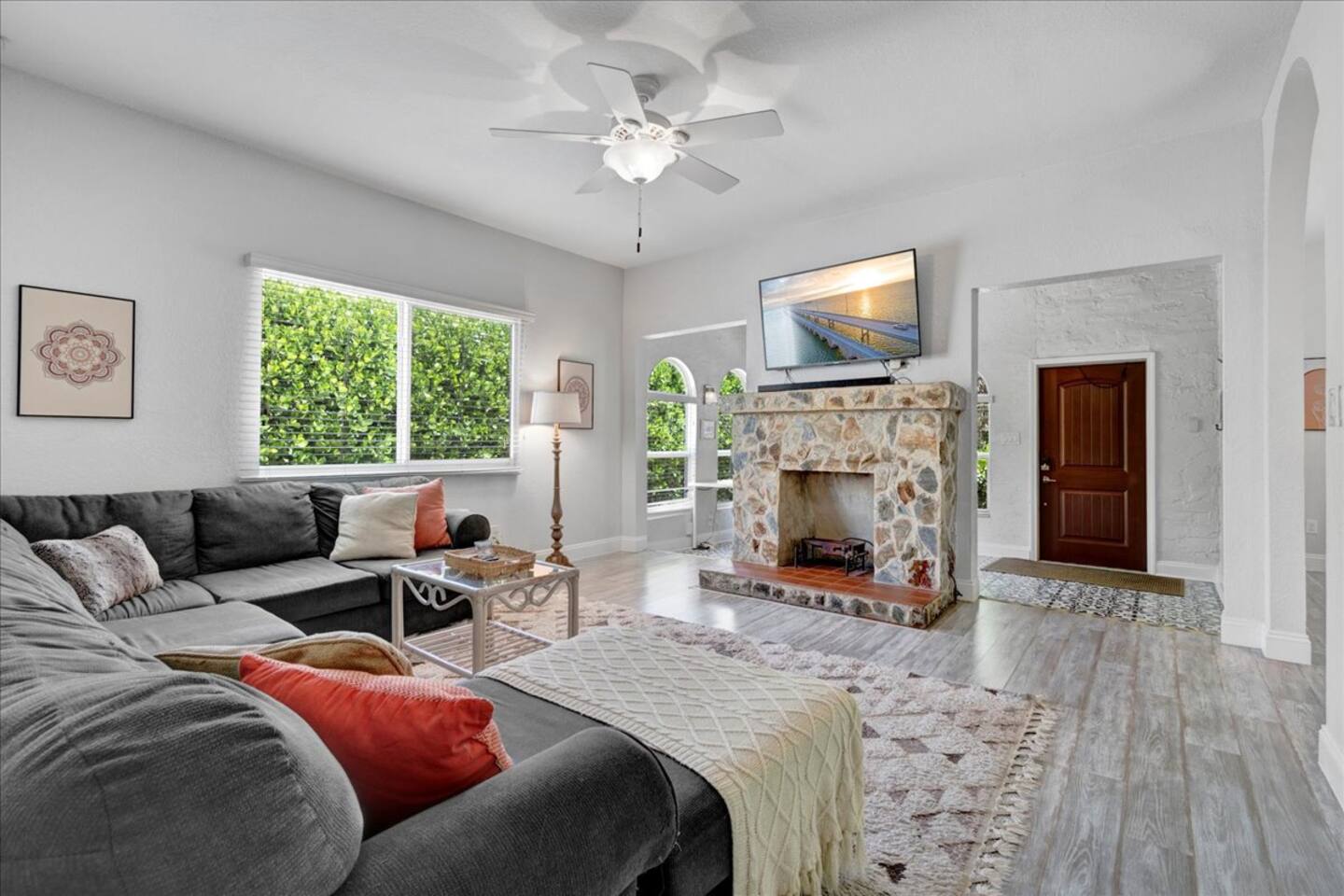 Discover comfort and fun at this recently remodeled 2-bedroom, 2-bathroom cottage. Enjoy a cozy firepit, practice on the putting green, and relax in a beautifully updated interior. Perfect for families or friends, this home offers modern amenities and a serene atmosphere. Close to parks, shopping, and dining, it’s the ideal getaway for up to 6 guests. Book now for a memorable stay!