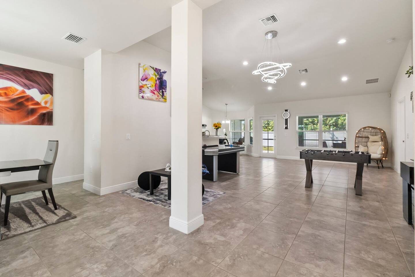 The Space ๐ก Welcome to our spacious and modern 4 bedroom, 2 bathroom home in beautiful Port Charlotte! Perfect for families, groups, or anyone looking to enjoy the stunning Gulf Coast of Florida. ๐๏ธ Bedrooms: Comfortable beds for a great night's sleep. ๐ Air Hockey Table: Fun for everyone. โฝ Foosball Table: Enjoy friendly matches. ๐ฝ๏ธ Outdoor Dining: Perfect for al fresco meals. ๐ Fast WiFi: Stay connected with high-speed internet. ๐งบ Provided Amenities: We provide all linens, bed sheets, pool towels, shampoo, conditioner, body wash, hand soap, dish soap, laundry detergent, and garbage bags. Nearby Amenities and Attractions ๐ Explore the best of Port Charlotte and the surrounding areas: ๐๏ธ Beaches: Port Charlotte Beach Park: A local favorite with a beautiful sandy beach. Englewood Beach: Perfect for swimming, sunbathing, and shelling. Boca Grande Beach: Known for its crystal-clear waters and stunning sunsets. ๐ฃ Fishing: Charlotte Harbor: One of the best places for fishing in Florida. Peace River: Enjoy freshwater fishing and kayaking. ๐๏ธ Shopping: Port Charlotte Town Center: A variety of shops and dining options. Fishermenโs Village: A unique shopping, dining, and entertainment destination. ๐ฝ๏ธ Dining: The Perfect Caper: An upscale restaurant known for its innovative cuisine. Laishley Crab House: Enjoy fresh seafood with a view. TTโs Tiki Bar: A fun spot for casual dining and live music by the water. ๐๏ธ Nature & Parks: Myakka State Forest: Perfect for hiking, bird watching, and horseback riding. Ollieโs Pond Park: A great place for a peaceful walk and bird watching. โณ Golf: Riverwood Golf Club: A top-rated course with beautiful scenery. Port Charlotte Golf Club: Enjoy a round of golf in a relaxed setting. ๐จ Cultural Attractions: Charlotte Performing Arts Center: Enjoy a variety of performances. Military Heritage Museum: Learn about the history of the military. ๐ค Boating: Port Charlotte Beach Park Boat Ramp: Easy access to the harbor for boating enthusiasts. Burnt Store Marina: A full-service marina with great facilities. Port Charlotte offers a perfect blend of relaxation and adventure, with beautiful beaches, great fishing spots, and a variety of outdoor activities. Our home provides a comfortable and fun base to explore all that the Gulf Coast has to offer.