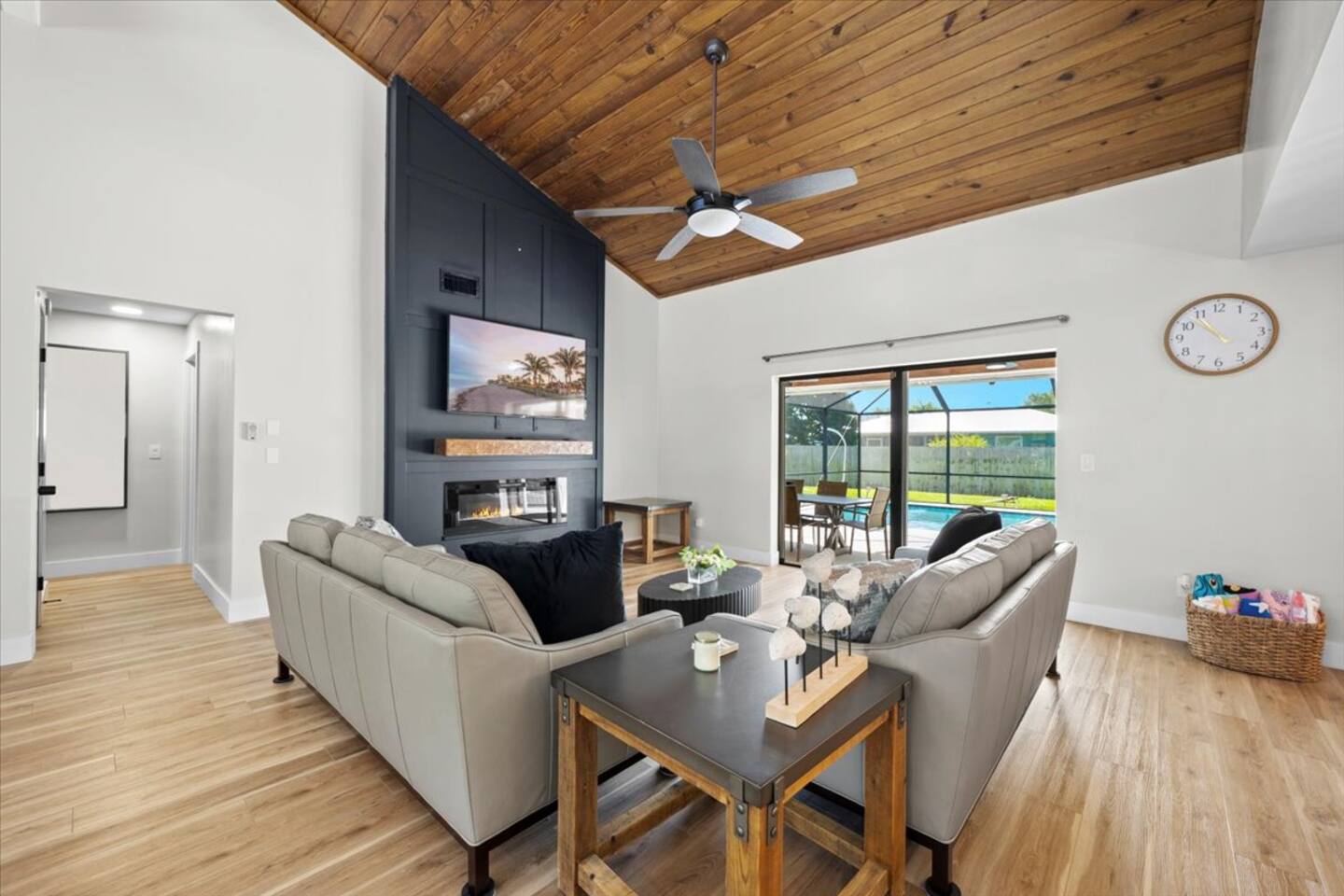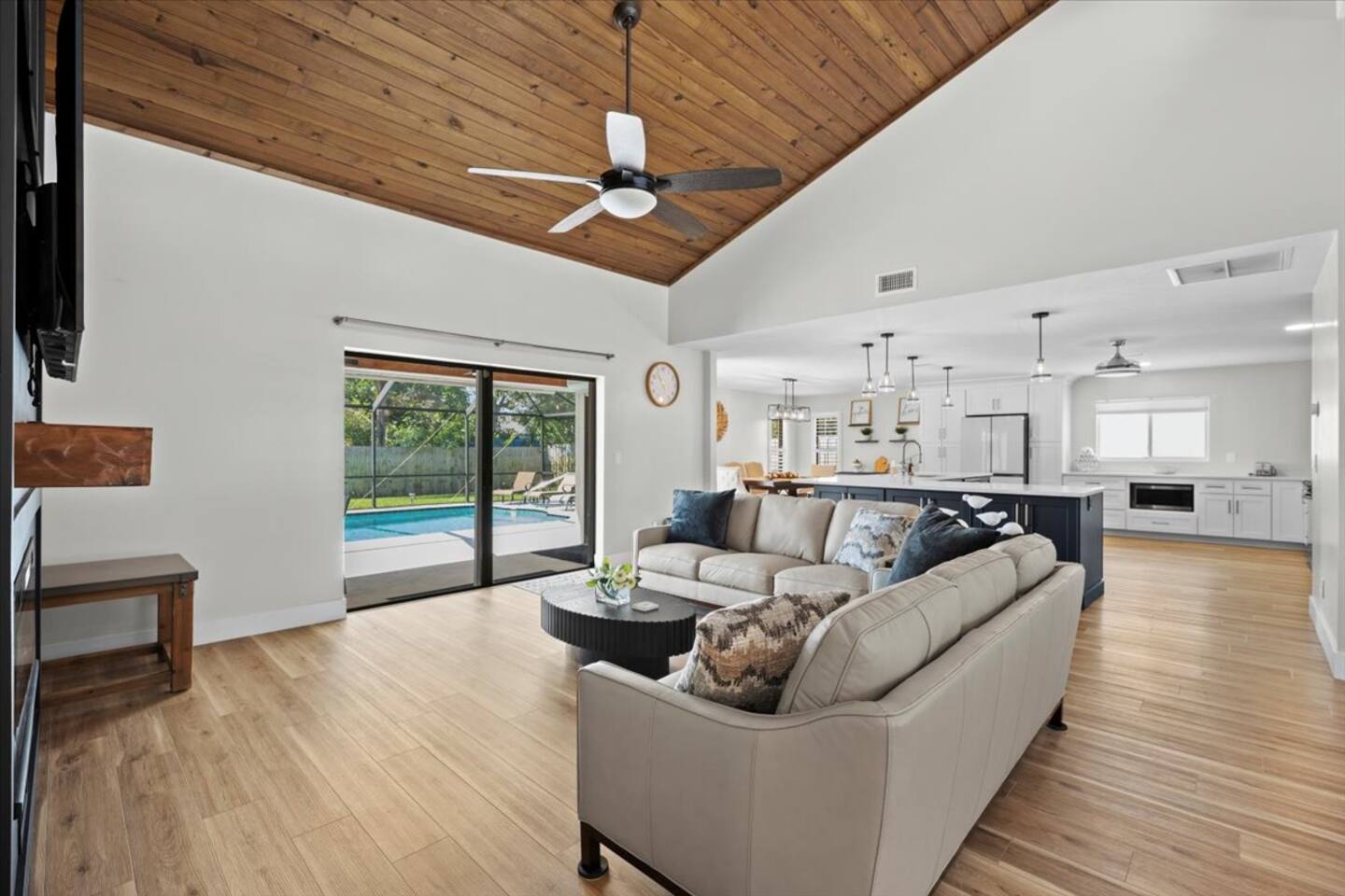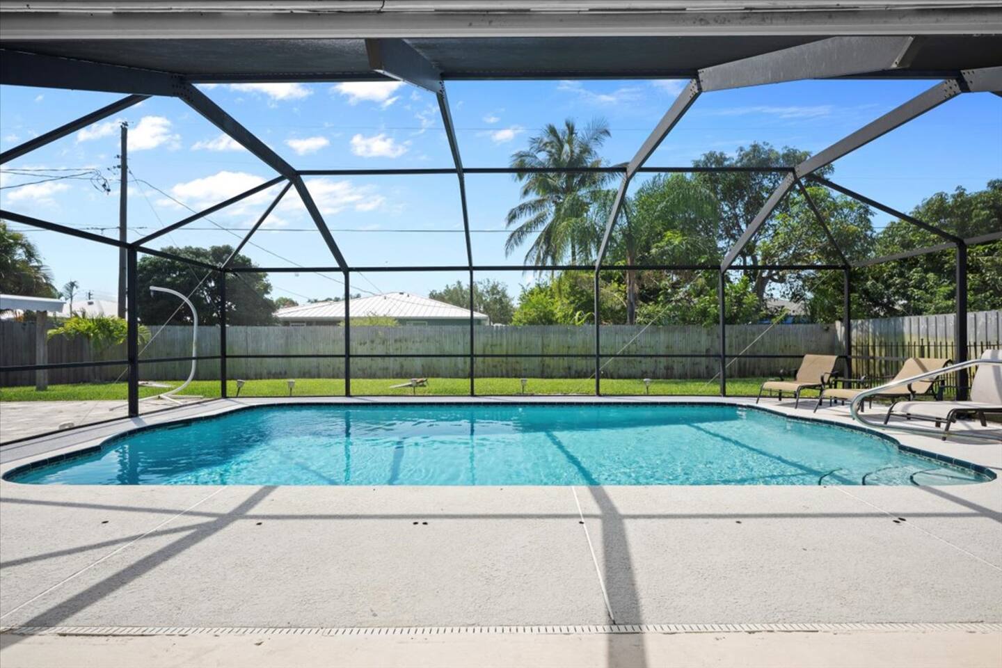 🛏️ The Space 4 comfortable bedrooms with fresh linens & closet space 2 full bathrooms with essentials & fluffy towels 🧼🚿 Bright, open living area with Smart TV & high-speed Wi-Fi 📺💨 Fully equipped kitchen with everything you need to cook at home 🍽️🍳 Dining area plus breakfast bar—perfect for meals or game nights 🎲 In-home washer & dryer 🧺 🌊 Outdoor Oasis Private screened-in pool—perfect for swimming, sunbathing & relaxing 🏊♂️🩴 Covered patio with outdoor seating for al fresco dining or morning coffee ☕🌤 Fenced yard for added privacy & peace of mind 🌳 📍 Prime Location 15–20 mins to Jensen Beach, Stuart, & Treasure Coast shores 🏖️ Close to PGA Golf Club, Clover Park (Mets spring training), shopping, & dining 🛍️🍔 Easy access to I-95 & US-1 for day trips or commuting 🚗 ✅ Family-friendly ✅ Central A/C ✅ Self check-in ✅ Free driveway parking This home has everything you need for a relaxing, sunny escape in Port St. Lucie—whether you're splashing in the pool, exploring nearby beaches, or just enjoying time with loved ones. 🌞 Book your stay today and make lasting memories in this Florida gem! ✨