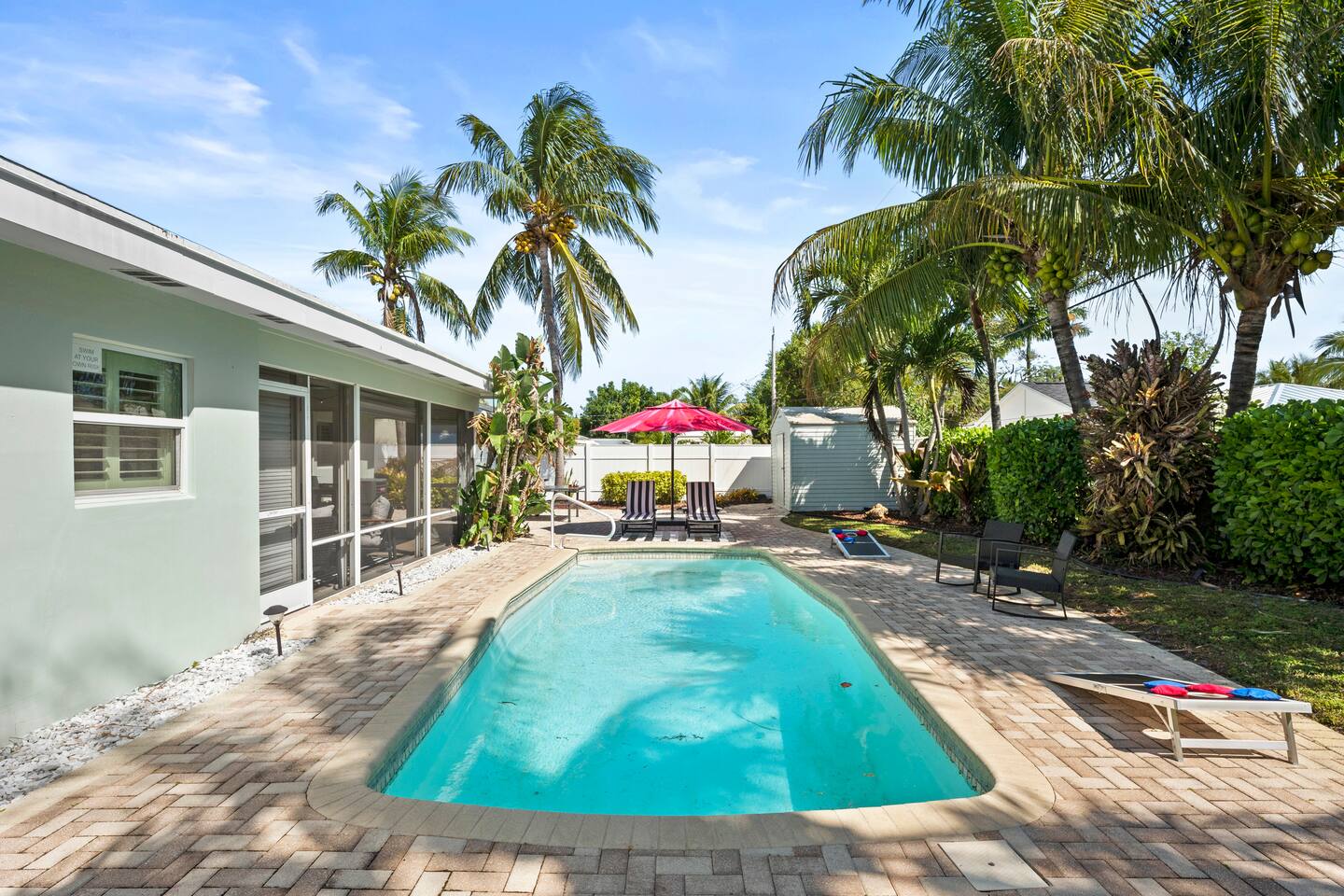 Stylish 2-Bedroom, 2-Bathroom Home with Private Pool – Just Steps from the Beach! Experience the perfect beach escape in this stylish 2-bedroom, 2-bathroom home. With a private pool and only a short drive to the beach, it’s the ideal spot for your next vacation, offering both relaxation and convenience. Private Pool: Take a dip in the pool anytime you like, whether it's for a morning swim or a relaxing evening soak.