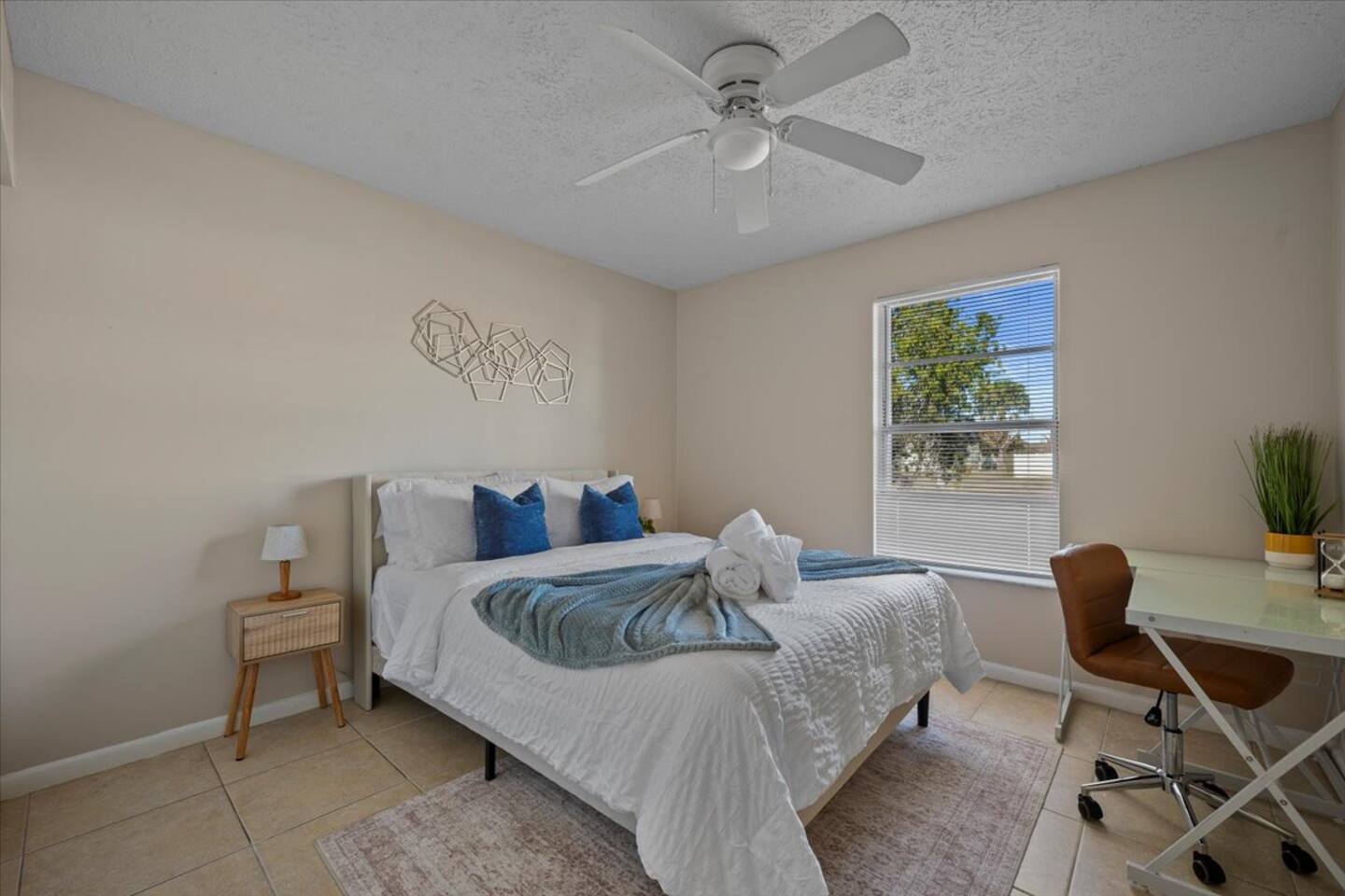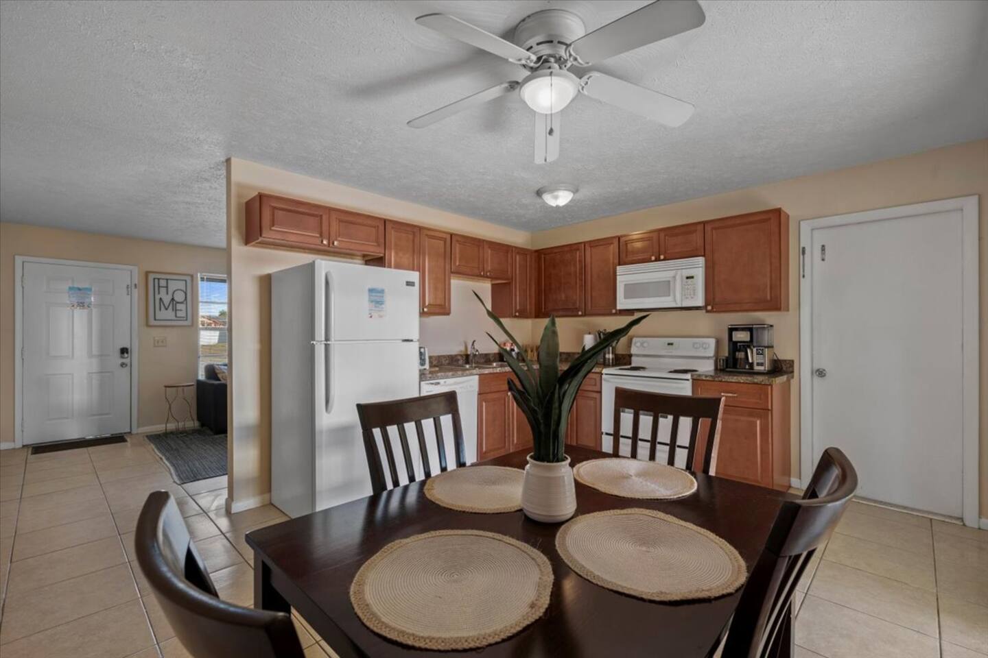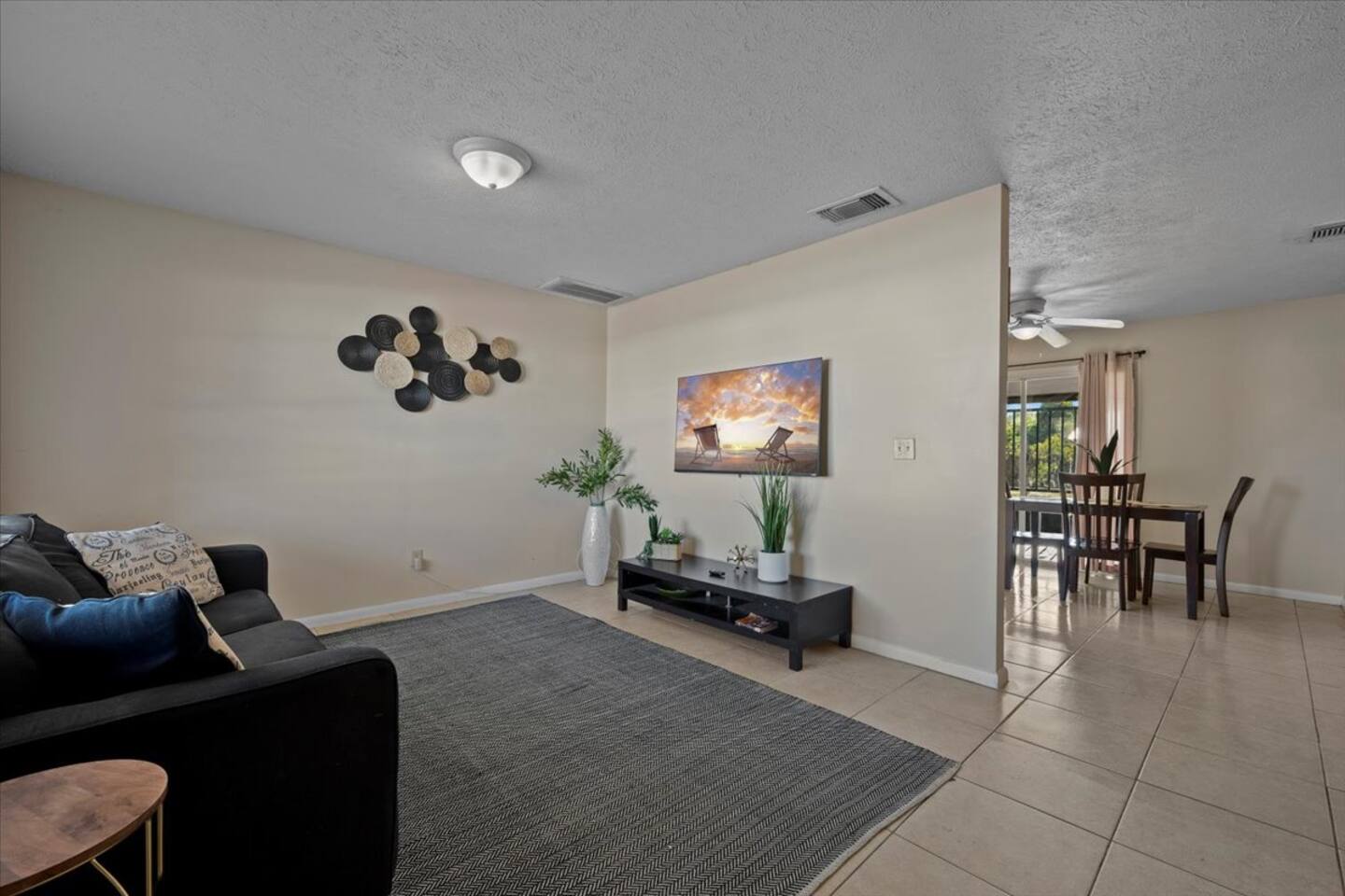 π‘ Rooms & Spaces Living Room Bright and comfortable seating area with Smart TV and fast WiFi β perfect for relaxing after a day out. Kitchen Fully equipped kitchen with stove, oven, microwave, refrigerator, coffee maker, and all essential cookware and utensils for preparing meals at home. Dining Area Dining table with seating for 4 guests β ideal for meals, games, or meaningful conversations. Primary Bedroom Queen bed with comfortable bedding, closet space, and private en-suite bathroom. Bedroom 2 Queen bed with fresh linens and closet storage. Bedroom 3 Queen bed with comfortable setup β perfect for additional guests or family members. Bathrooms (2) Two full bathrooms stocked with fresh towels and essentials. Outdoor Space Private backyard space to relax and enjoy the Florida sunshine. π΄βοΈ