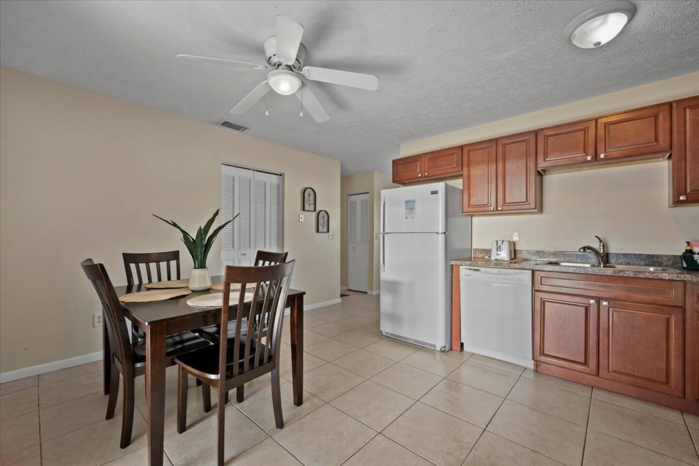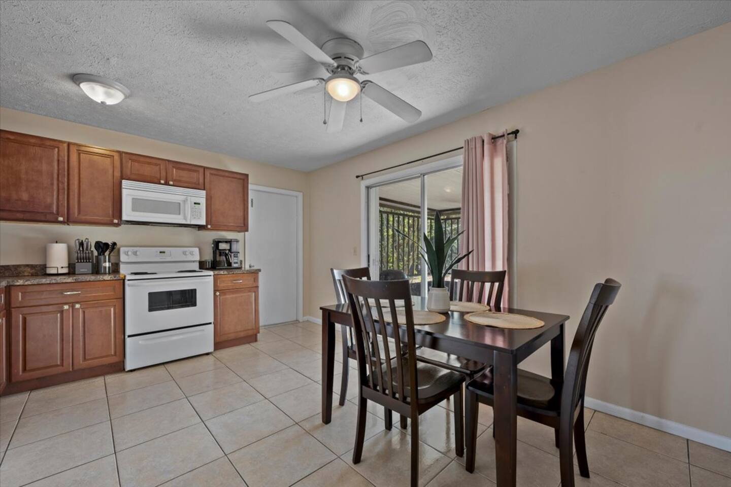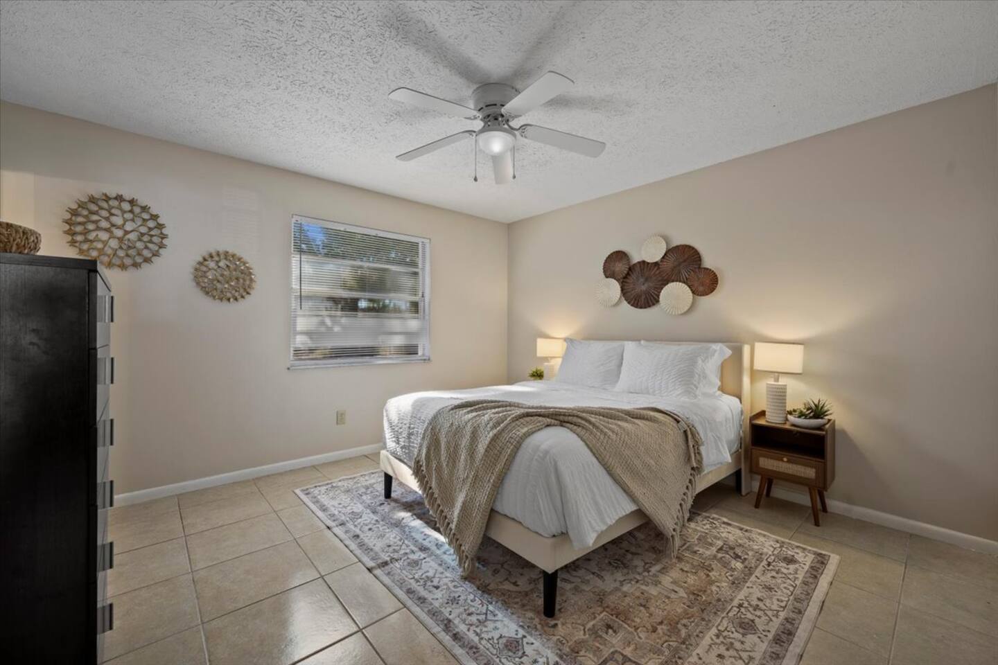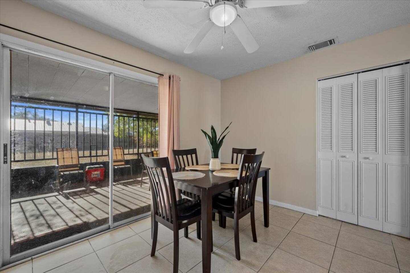 π‘ Rooms & Spaces Living Room Bright and comfortable seating area with Smart TV and fast WiFi β perfect for relaxing after a day out. Kitchen Fully equipped kitchen with stove, oven, microwave, refrigerator, coffee maker, and all essential cookware and utensils for preparing meals at home. Dining Area Dining table with seating for 4 guests β ideal for meals, games, or meaningful conversations. Primary Bedroom Queen bed with comfortable bedding, closet space, and private en-suite bathroom. Bedroom 2 Queen bed with fresh linens and closet storage. Bedroom 3 Queen bed with comfortable setup β perfect for additional guests or family members. Bathrooms (2) Two full bathrooms stocked with fresh towels and essentials. Outdoor Space Private backyard space to relax and enjoy the Florida sunshine. π΄βοΈ
